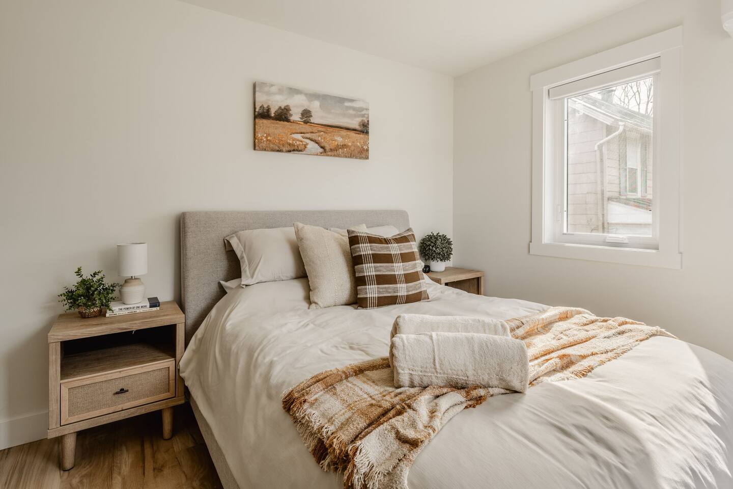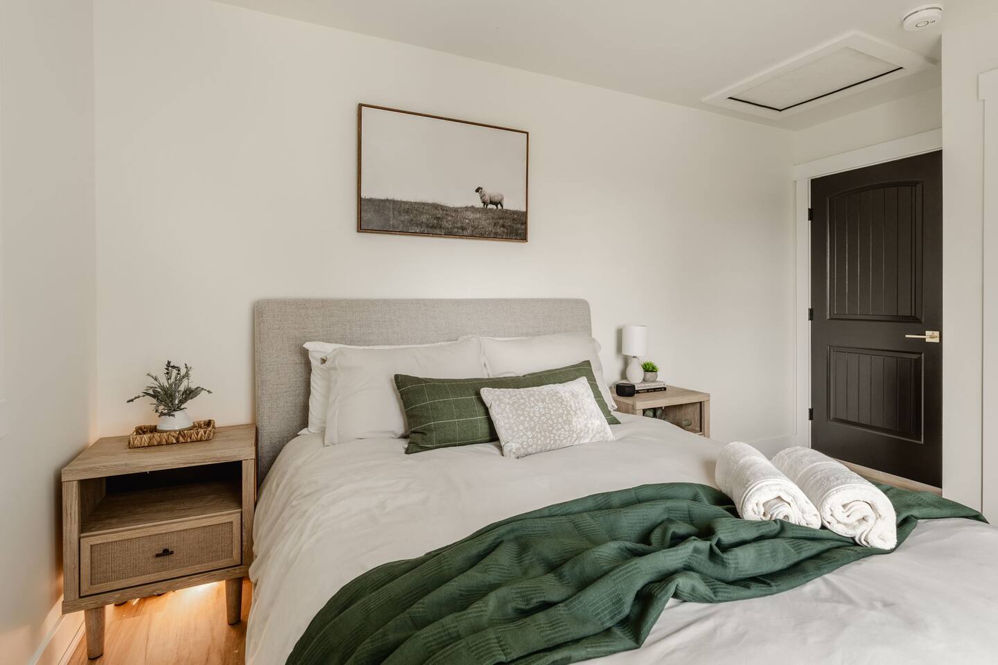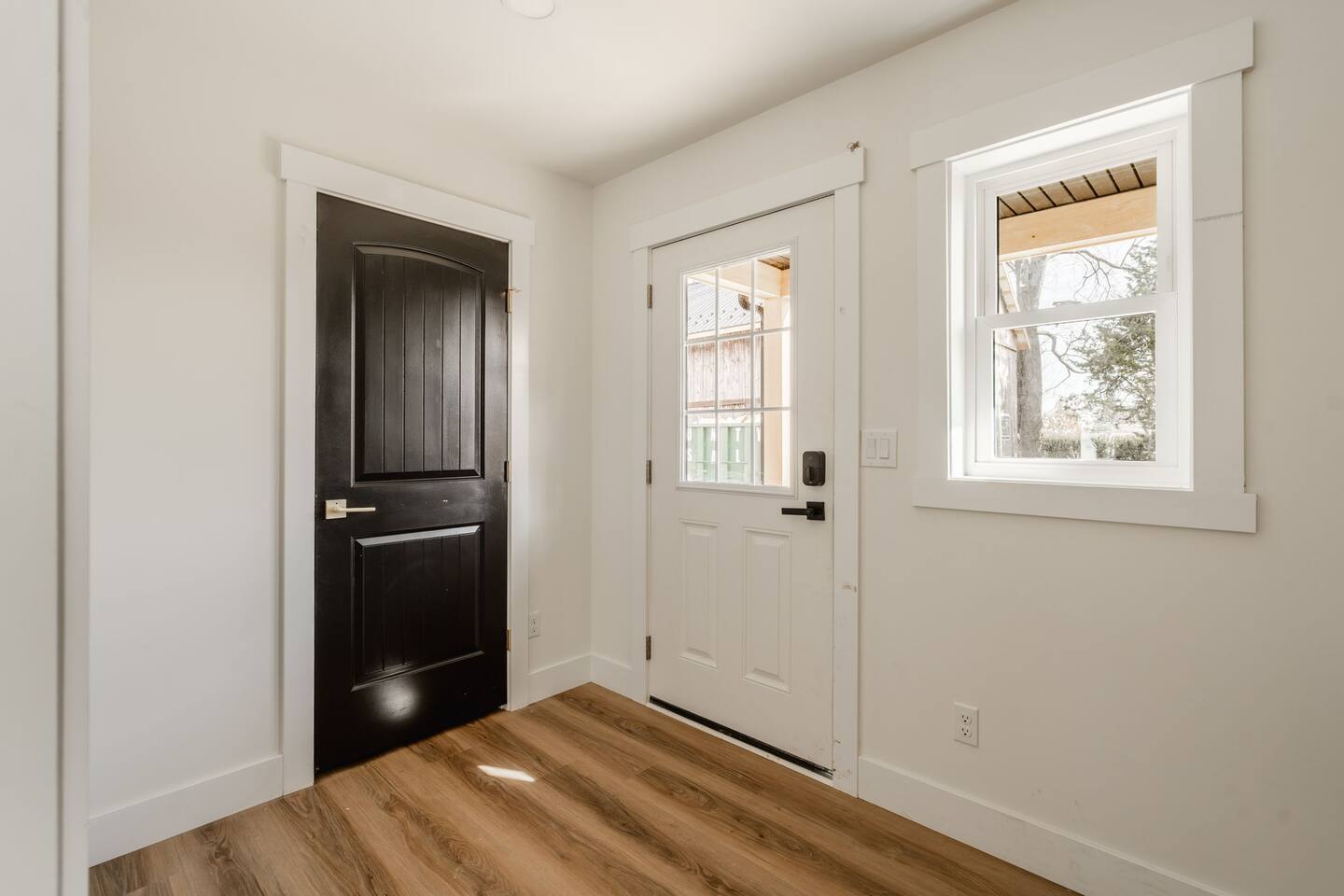 Guests will be using a shared driveway. Main Street Haven, the black house on the right side of the drive, has parking spots close to the back entrance. There’s an old barn on the property that’s not for guests. Guests will use the rear entrance to the house. A unique entry code will be sent to you a few days before your check-in.