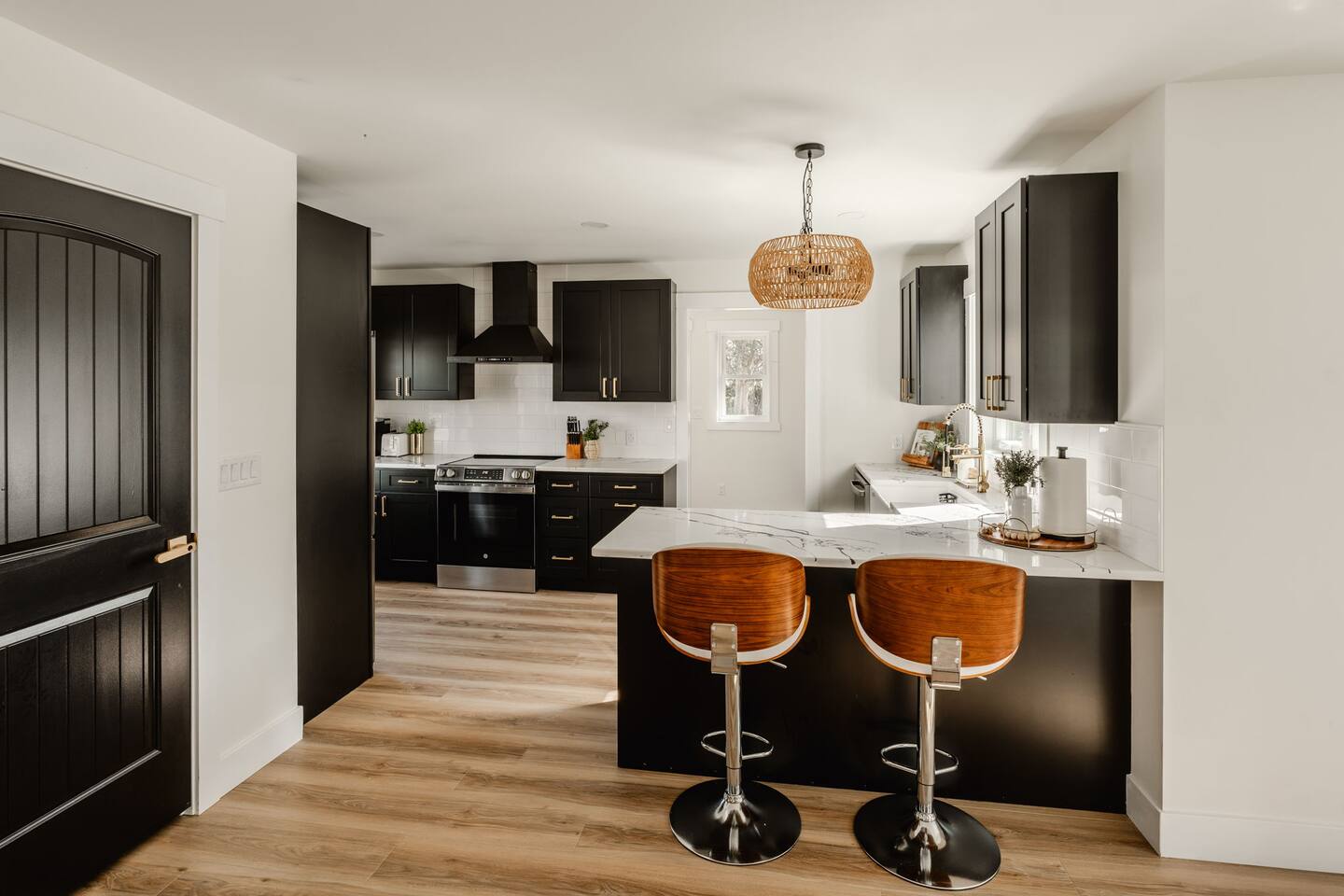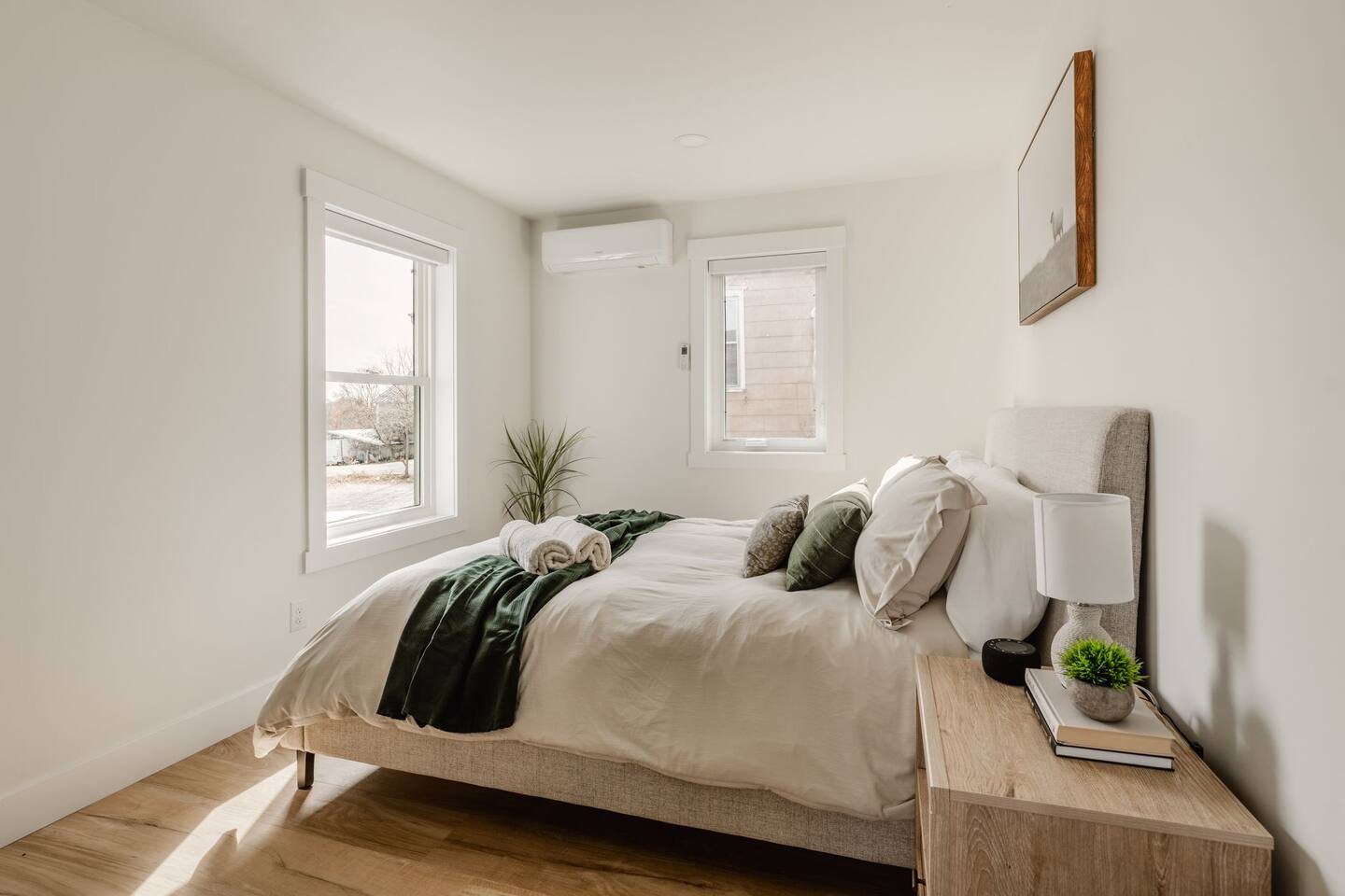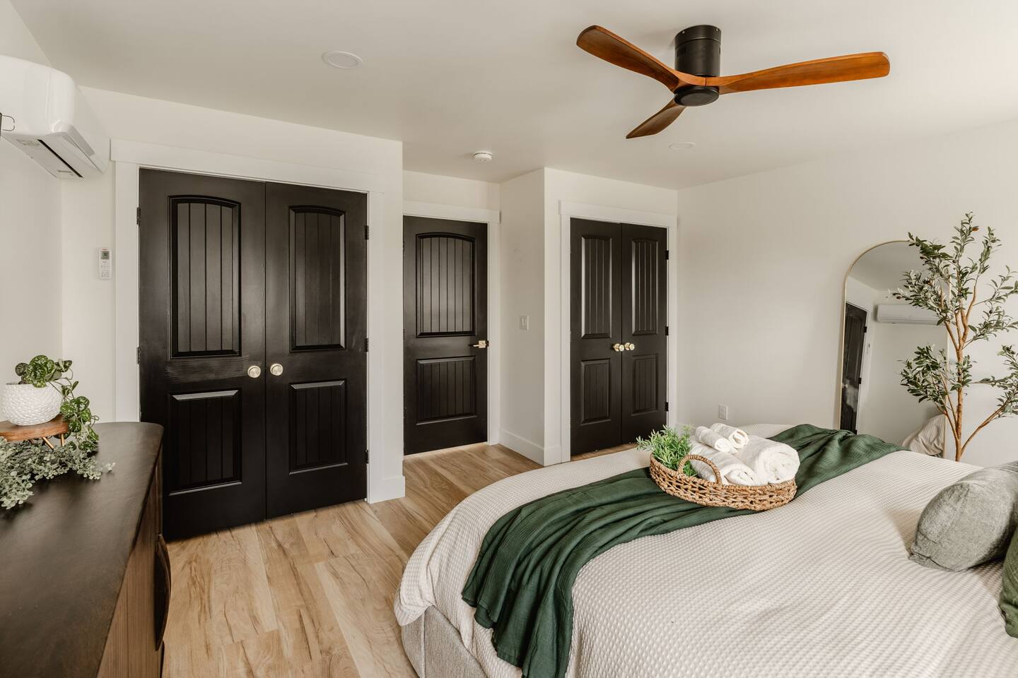 Guests will be using a shared driveway. Main Street Haven, the black house on the right side of the drive, has parking spots close to the back entrance. There’s an old barn on the property that’s not for guests. Guests will use the rear entrance to the house. A unique entry code will be sent to you a few days before your check-in.